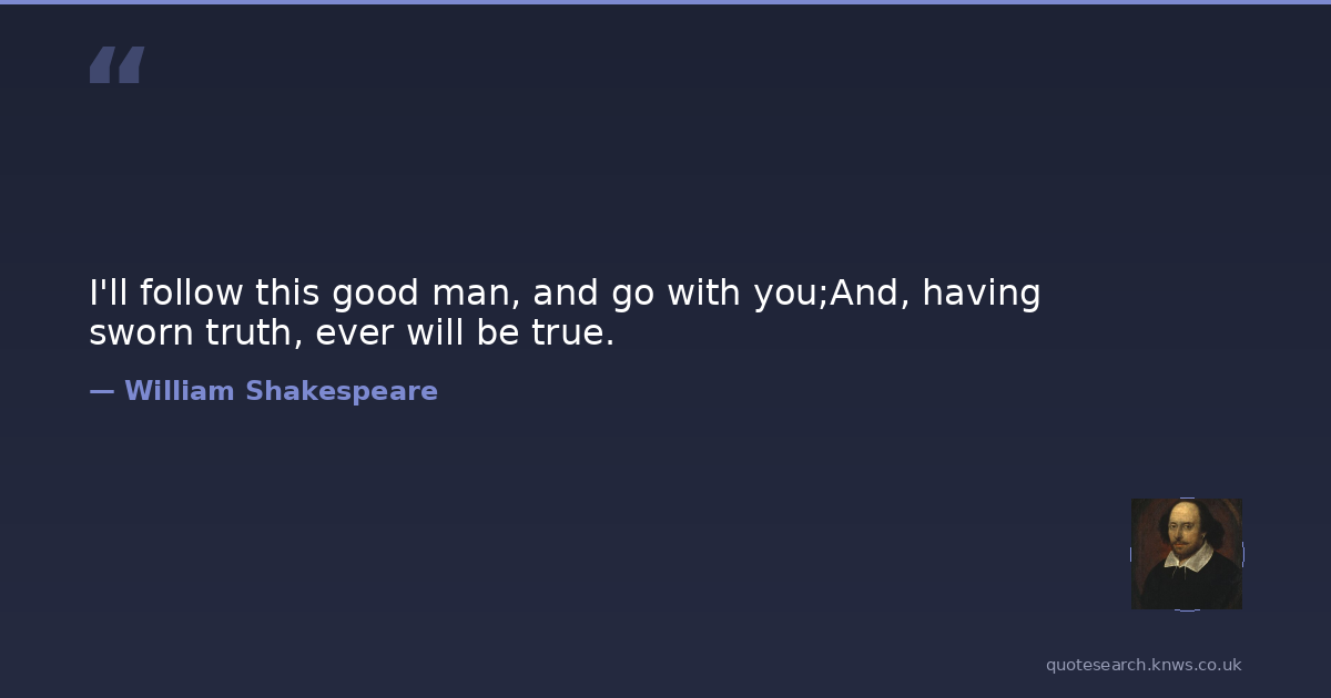 I'll follow this good man, and go with you;And, having sworn truth, ever will be true.