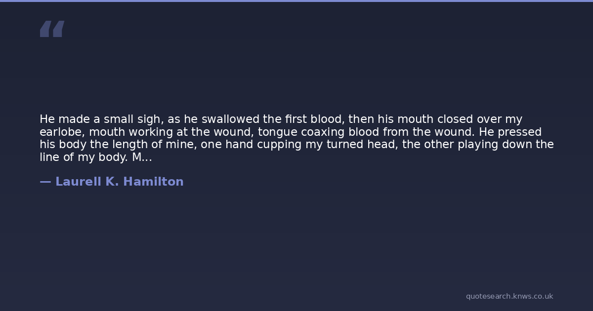 He made a small sigh, as he swallowed the first blood, then his mouth closed over my earlobe, mouth working at the wound, tongue coaxing blood from the wound. He pressed his body the length of mine, one hand cupping my turned head, the other playing down the line of my body. Maybe it was just blood, but I never stroked my steak while eating it.