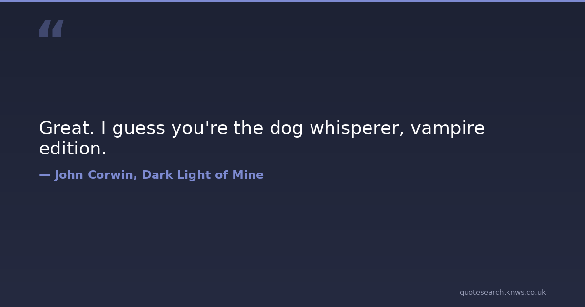 Great. I guess you're the dog whisperer, vampire edition. dog vampire whisperer Download Image Share on X Share on Facebook Copy Link