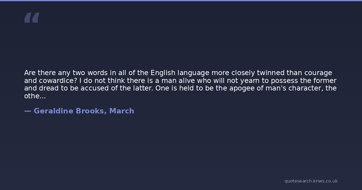 Are there any two words in all of the English language more closely twinned than courage and cowardice? I do not think there is a man alive who will not yearn to possess the former and dread to be accused of the latter. One is held to be the apogee of man's character, the other its nadir. An yet, to me the two sit side by side on the circle of life, removed from each other by the merest degree of arc. (MARCH - Chapter 11 - page 168)