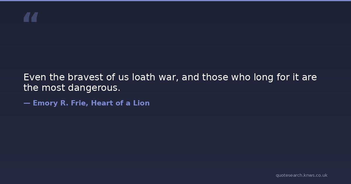 Even the bravest of us loath war, and those who long for it are the most dangerous.