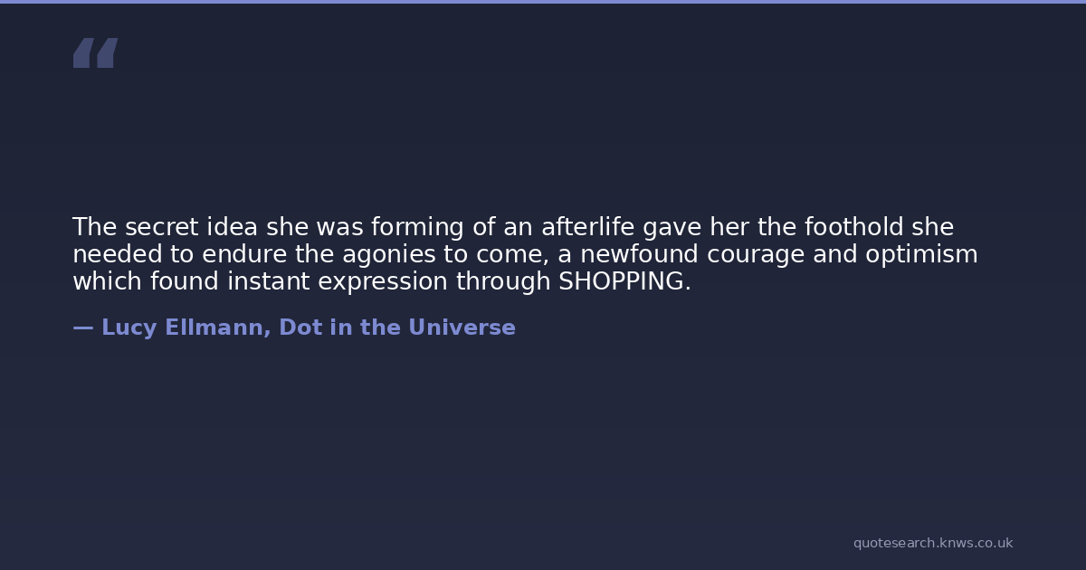 The secret idea she was forming of an afterlife gave her the foothold she needed to endure the agonies to come, a newfound courage and optimism which found instant expression through SHOPPING.