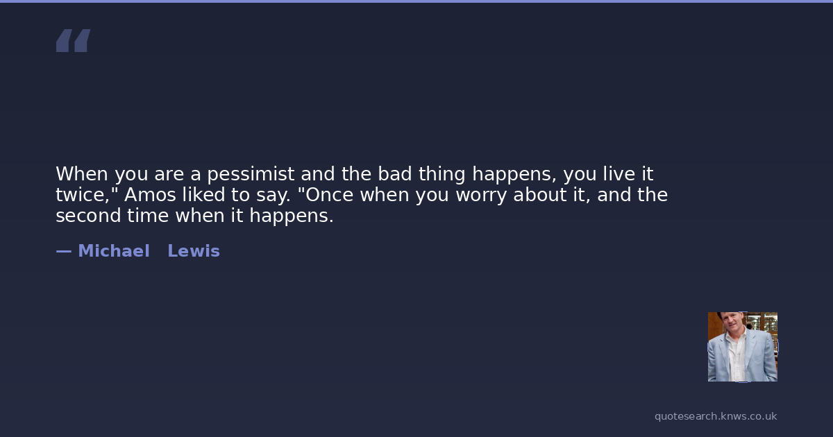 When you are a pessimist and the bad thing happens, you live it twice," Amos liked to say. "Once when you worry about it, and the second time when it happens.