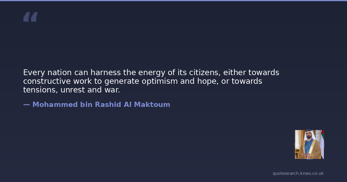 Every nation can harness the energy of its citizens, either towards constructive work to generate optimism and hope, or towards tensions, unrest and war.