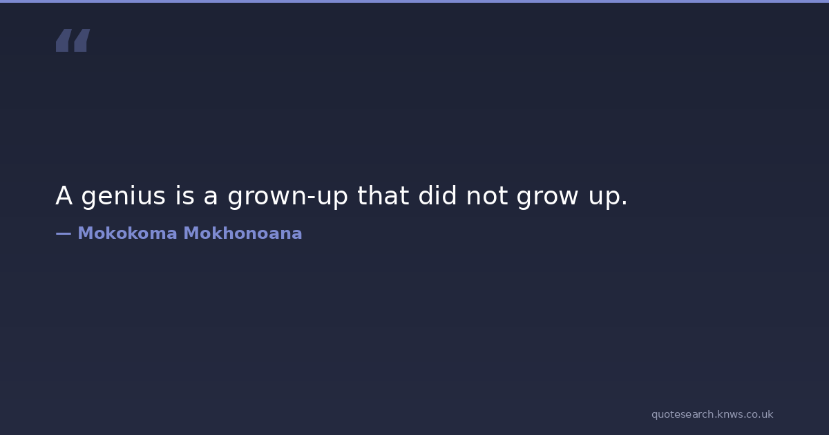 A genius is a grown-up that did not grow up. genius idealism idealistic idealists optimism realistic utopia Download Image Share on X Share on Facebook Copy Link