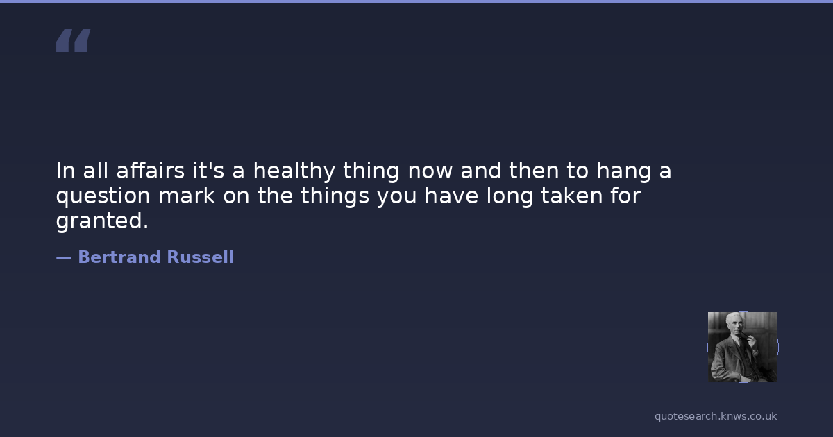 In all affairs it's a healthy thing now and then to hang a question mark on the things you have long taken for granted.
