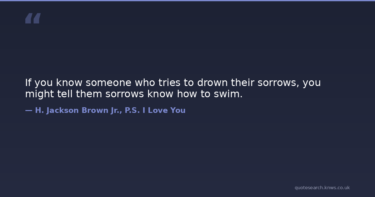 If you know someone who tries to drown their sorrows, you might tell them sorrows know how to swim. adversity sorrow Download Image Share on X Share on Facebook Copy Link