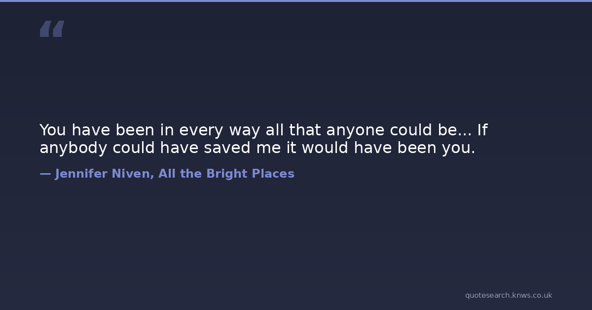 You have been in every way all that anyone could be... If anybody could have saved me it would have been you.