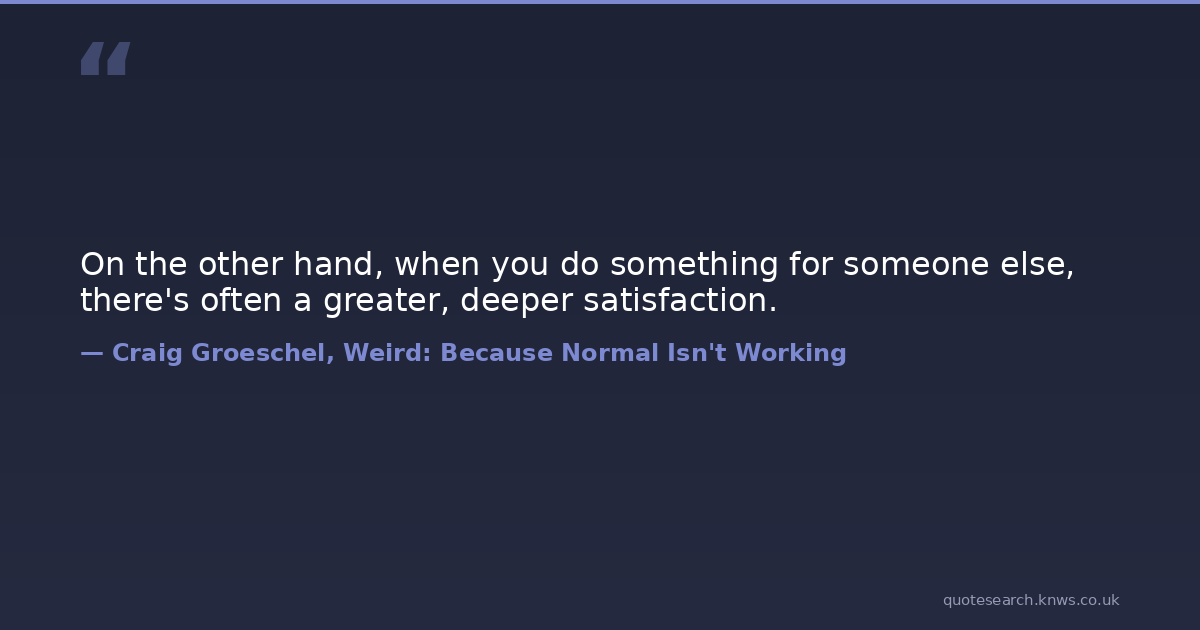 On the other hand, when you do something for someone else, there's often a greater, deeper satisfaction.