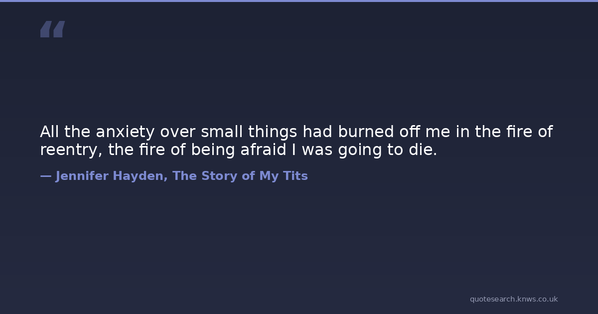 All the anxiety over small things had burned off me in the fire of reentry, the fire of being afraid I was going to die.