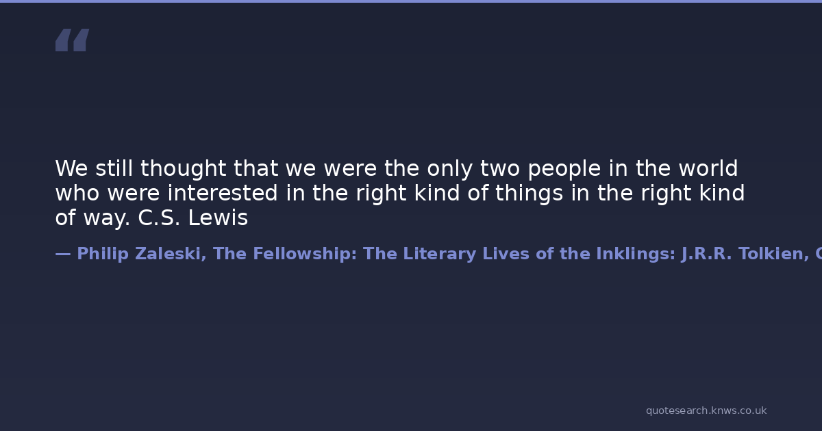 We still thought that we were the only two people in the world who were interested in the right kind of things in the right kind of way. C.S. Lewis
