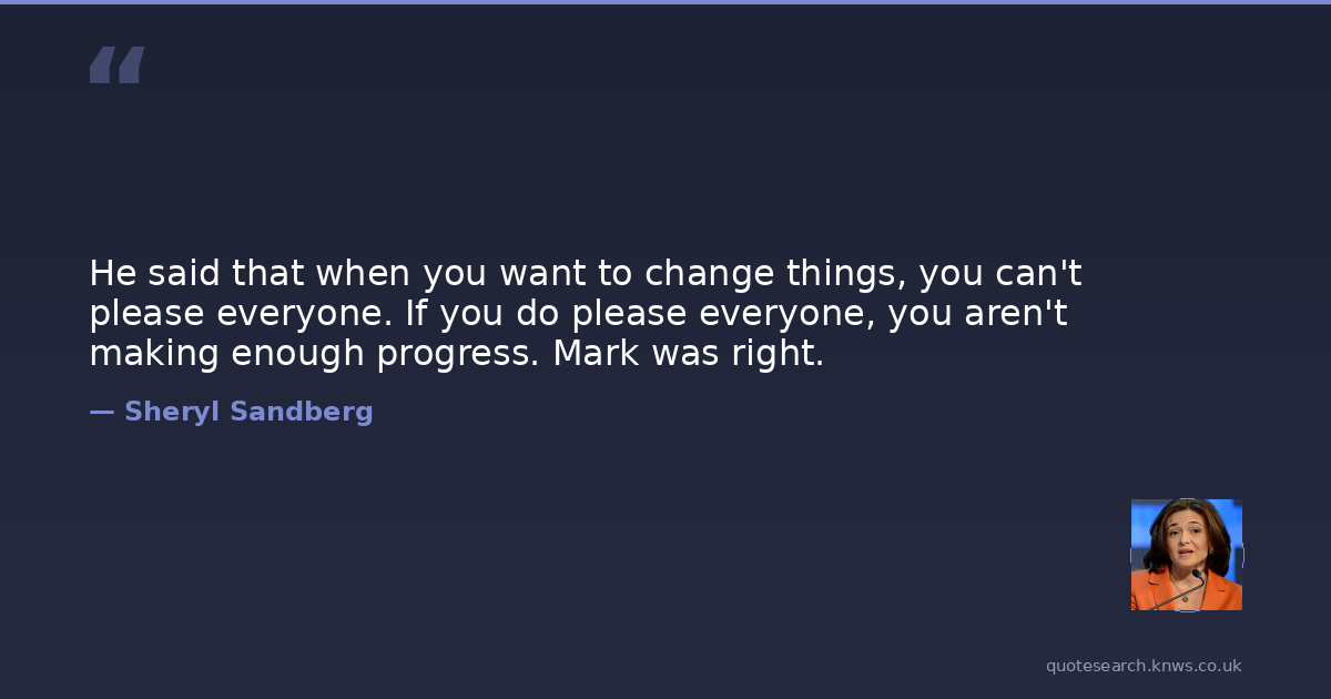 He said that when you want to change things, you can't please everyone. If you do please everyone, you aren't making enough progress. Mark was right.