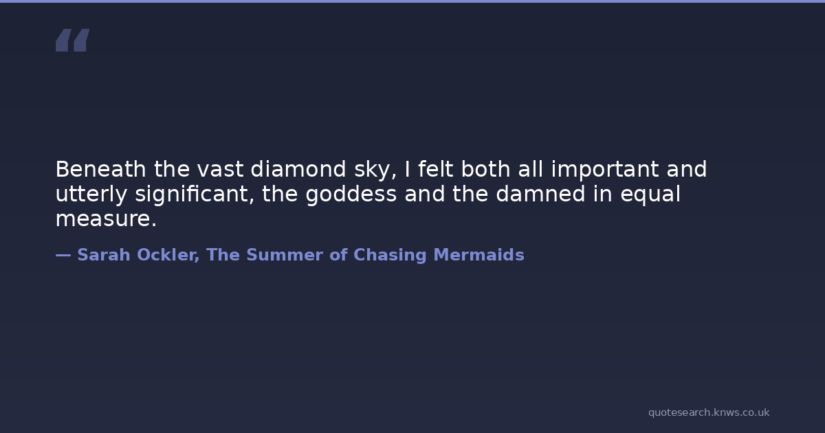 Beneath the vast diamond sky, I felt both all important and utterly significant, the goddess and the damned in equal measure.