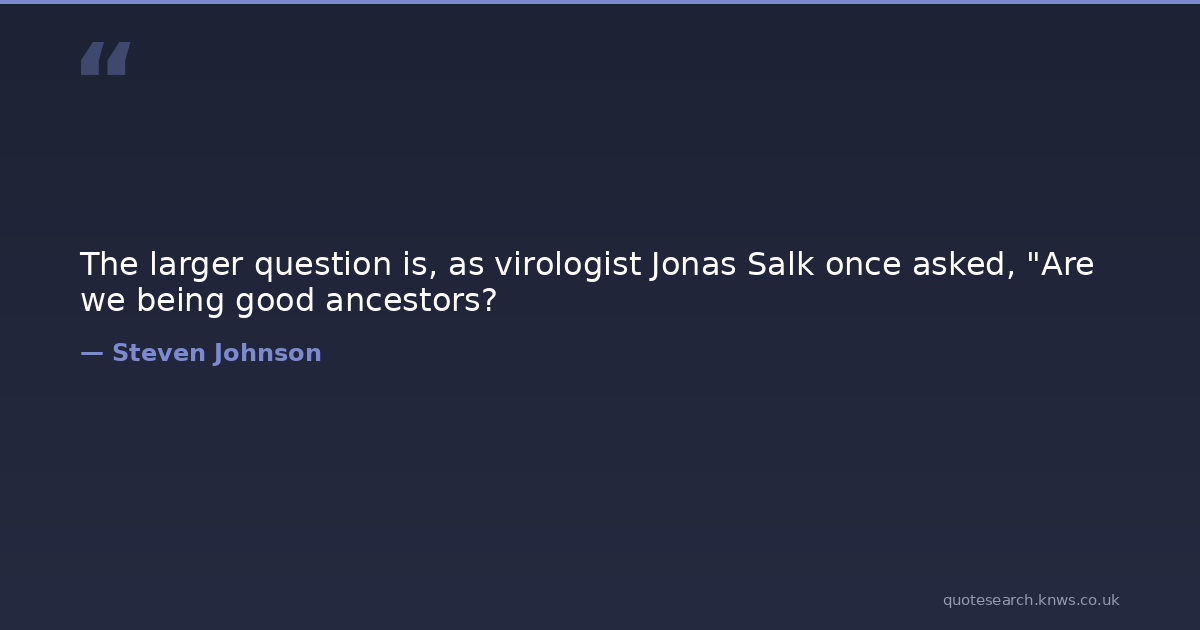 The larger question is, as virologist Jonas Salk once asked, "Are we being good ancestors?