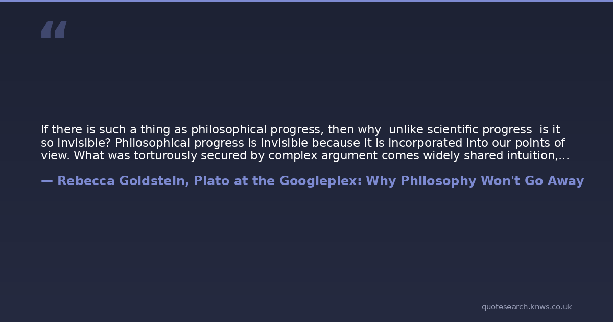 If there is such a thing as philosophical progress, then why unlike scientific progress is it so invisible? Philosophical progress is invisible because it is incorporated into our points of view. What was torturously secured by complex argument comes widely shared intuition, so obvious that we forget its provenance.