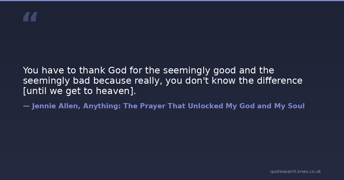 You have to thank God for the seemingly good and the seemingly bad because really, you don't know the difference [until we get to heaven].