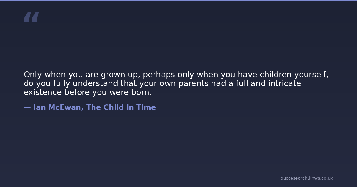 Only when you are grown up, perhaps only when you have children yourself, do you fully understand that your own parents had a full and intricate existence before you were born.