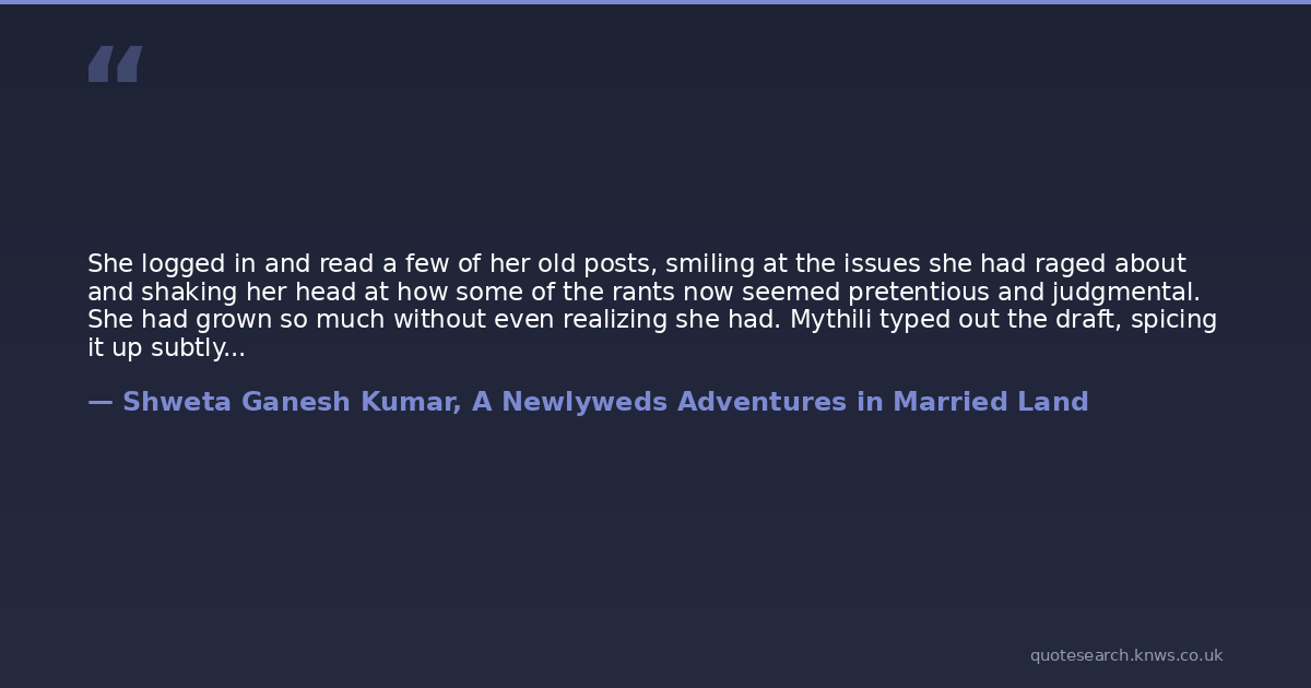 She logged in and read a few of her old posts, smiling at the issues she had raged about and shaking her head at how some of the rants now seemed pretentious and judgmental. She had grown so much without even realizing she had. Mythili typed out the draft, spicing it up subtly and after a last read, she published it. Admiring the brand new post on her main page, she realized she missed writing. She had barely written anything since her last by-line. Typing this out, she felt like she was back with a long-lost friend who understood her. It was like snuggling up in a warm blanket when a thunderstorm raged outside.