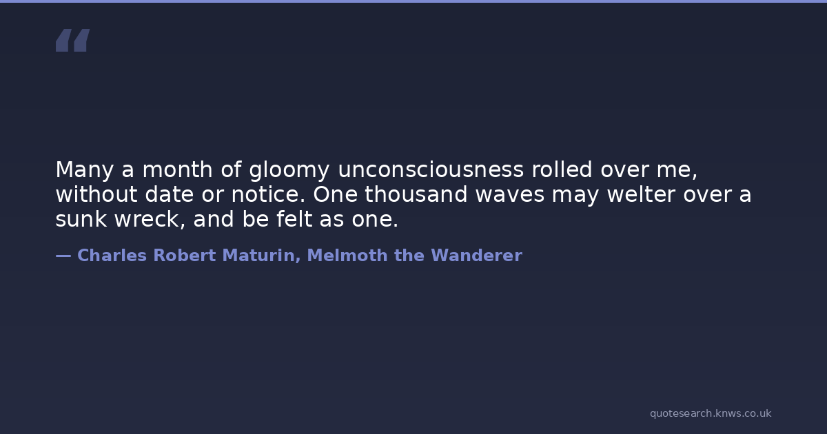 Many a month of gloomy unconsciousness rolled over me, without date or notice. One thousand waves may welter over a sunk wreck, and be felt as one.