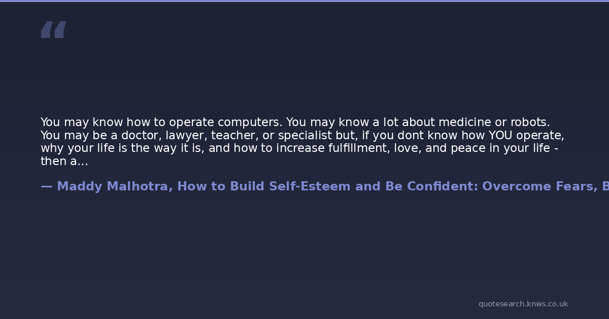 You may know how to operate computers. You may know a lot about medicine or robots. You may be a doctor, lawyer, teacher, or specialist but, if you dont know how YOU operate, why your life is the way it is, and how to increase fulfillment, love, and peace in your life - then all the knowledge and degrees arent really worth much!