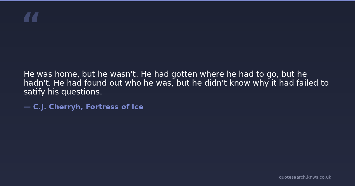He was home, but he wasn't. He had gotten where he had to go, but he hadn't. He had found out who he was, but he didn't know why it had failed to satify his questions.