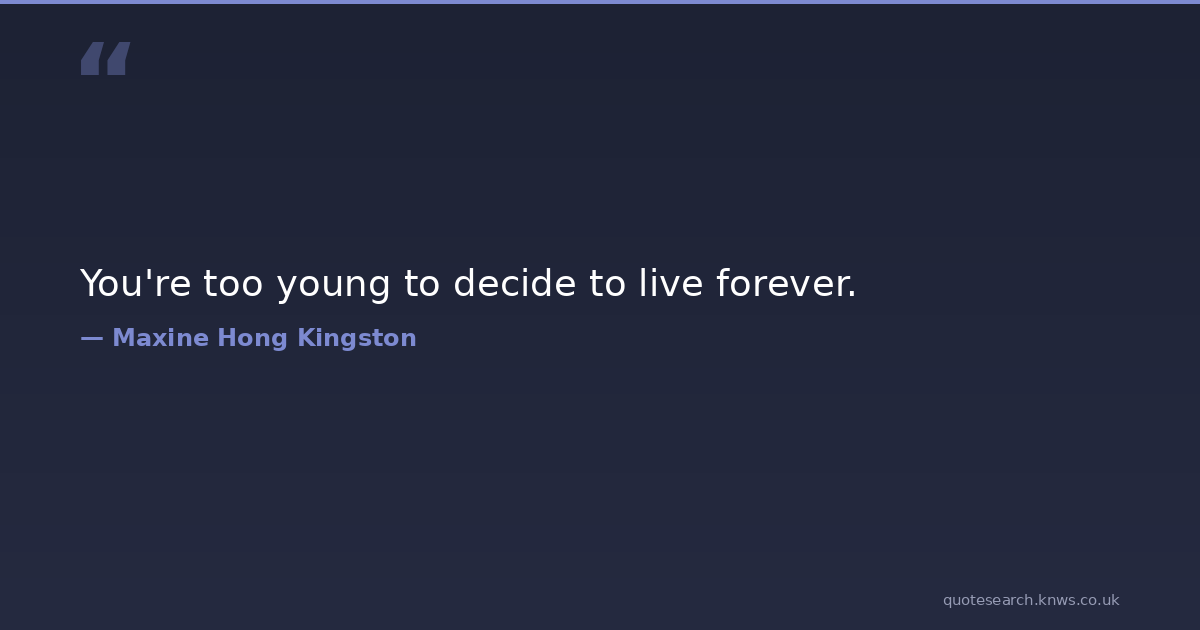 You're too young to decide to live forever.