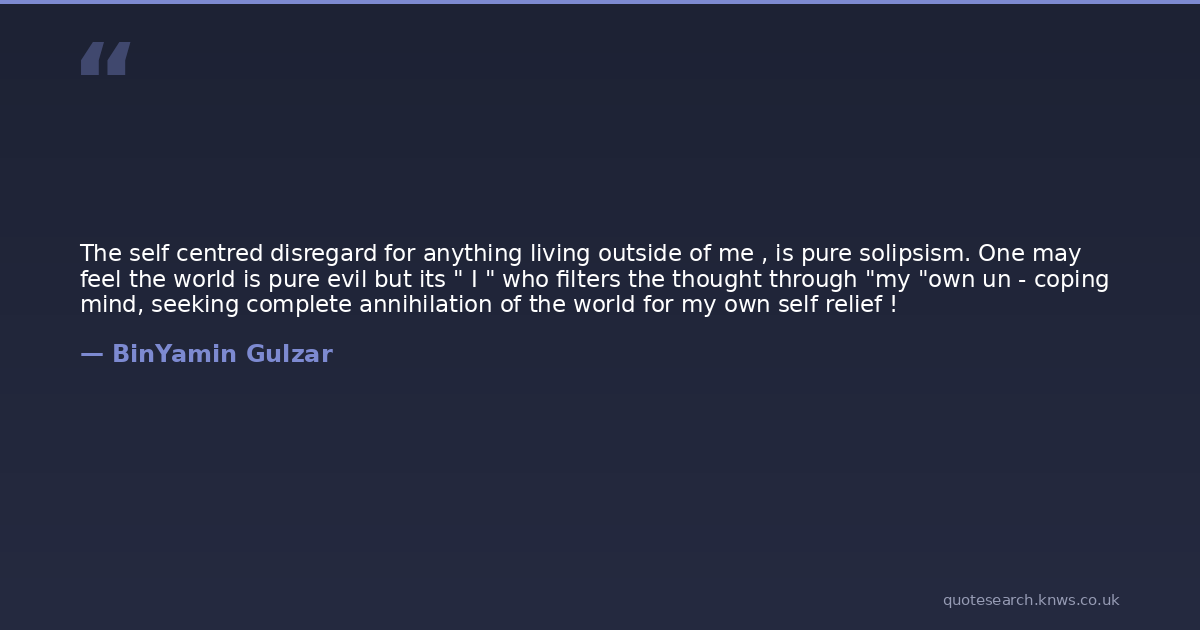 The self centred disregard for anything living outside of me , is pure solipsism. One may feel the world is pure evil but its " I " who filters the thought through "my "own un - coping mind, seeking complete annihilation of the world for my own self relief !