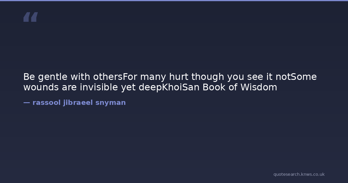 Be gentle with othersFor many hurt though you see it notSome wounds are invisible yet deepKhoiSan Book of Wisdom