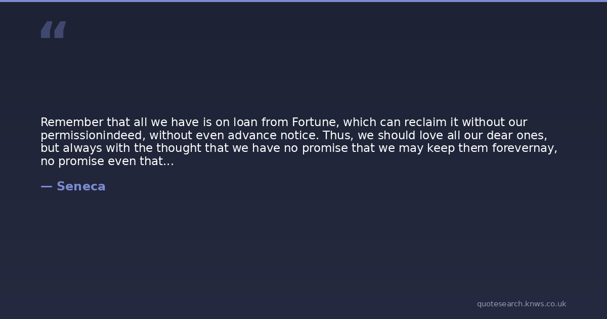 Remember that all we have is on loan from Fortune, which can reclaim it without our permissionindeed, without even advance notice. Thus, we should love all our dear ones, but always with the thought that we have no promise that we may keep them forevernay, no promise even that we may keep them for long.
