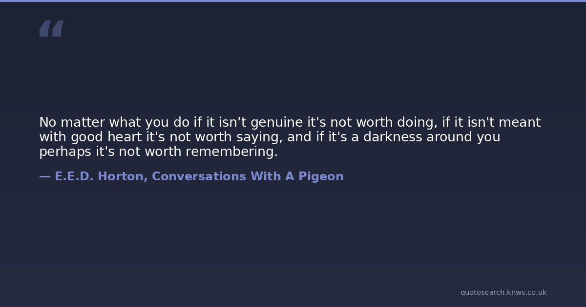 No matter what you do if it isn't genuine it's not worth doing, if it isn't meant with good heart it's not worth saying, and if it's a darkness around you perhaps it's not worth remembering.