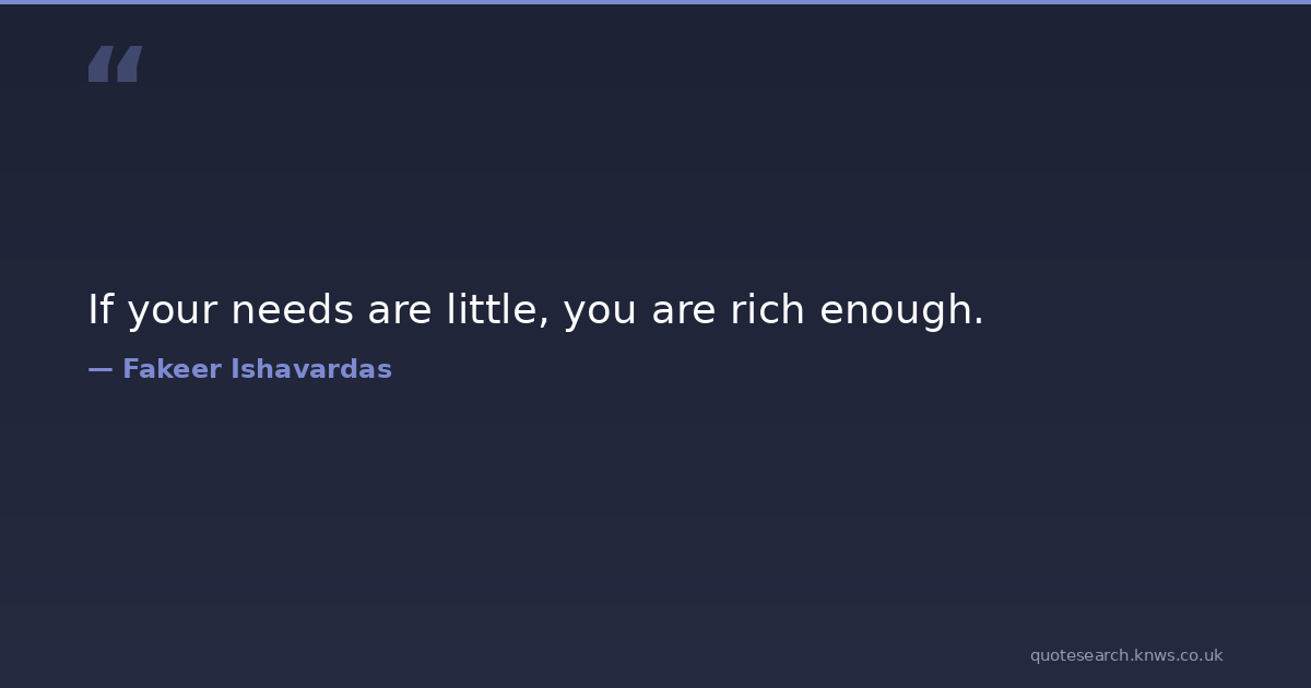 If your needs are little, you are rich enough. good-life-goodness good-life-quotes motivational-inspirational philosophy-of-life simplicity-happiness-joy simplicity-in-life spiritual-development spiritual-growth-quotes thinking-with-a-great-mind wellness-guru wellness-lifestyle Download Image Share on X Share on Facebook Copy Link