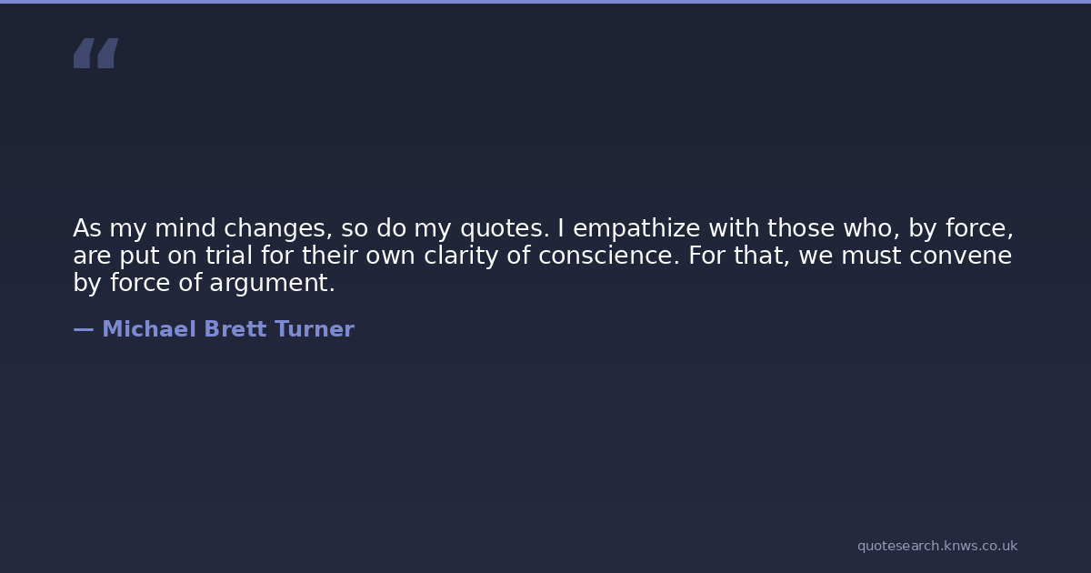 As my mind changes, so do my quotes. I empathize with those who, by force, are put on trial for their own clarity of conscience. For that, we must convene by force of argument.