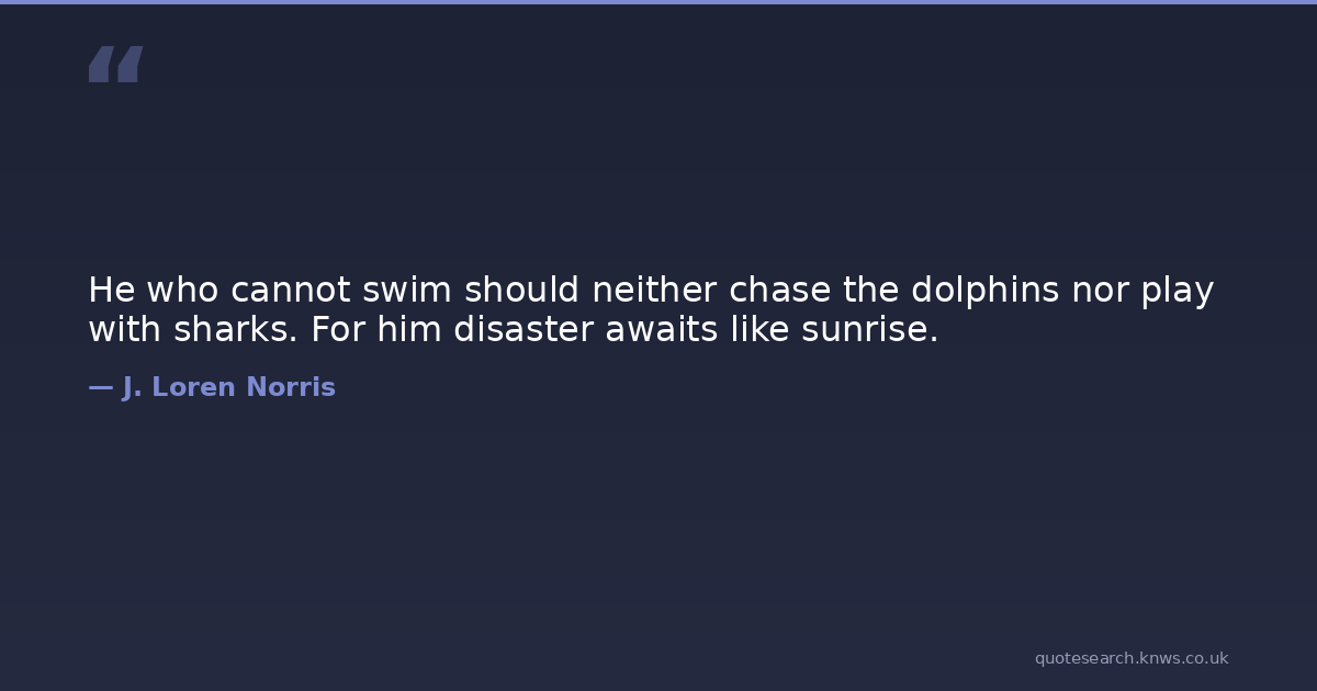 He who cannot swim should neither chase the dolphins nor play with sharks. For him disaster awaits like sunrise.