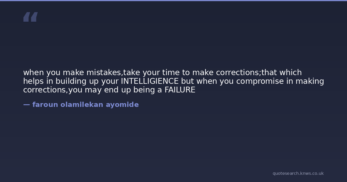 when you make mistakes,take your time to make corrections;that which helps in building up your INTELLIGIENCE but when you compromise in making corrections,you may end up being a FAILURE