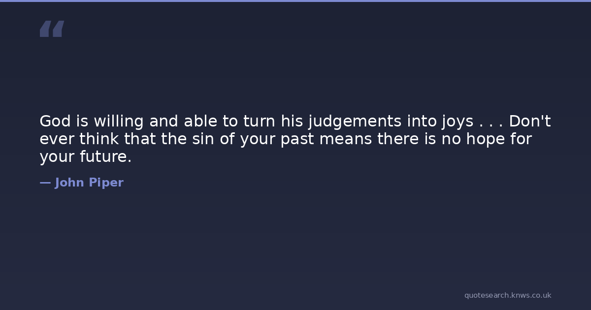 God is willing and able to turn his judgements into joys . . . Don't ever think that the sin of your past means there is no hope for your future.