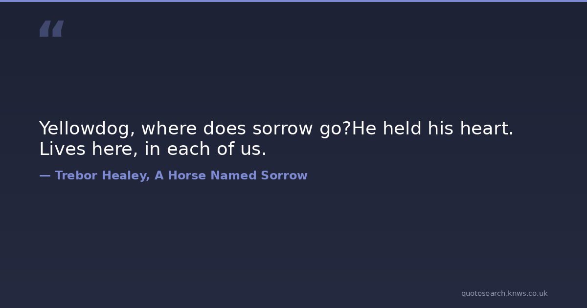 Yellowdog, where does sorrow go?He held his heart. Lives here, in each of us.