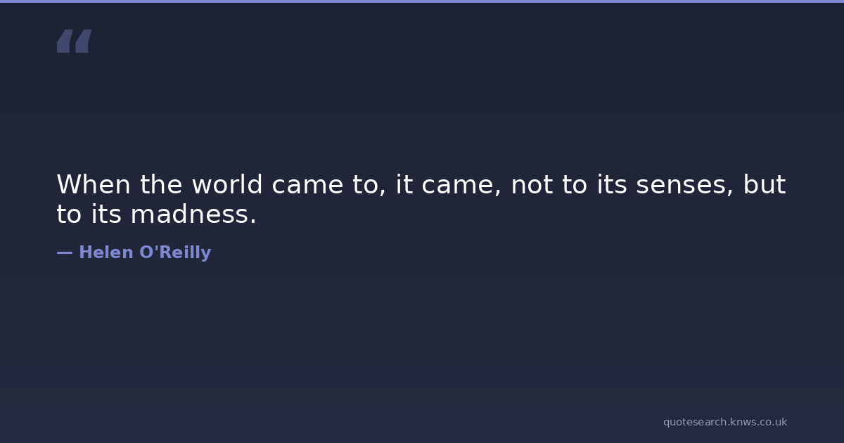 When the world came to, it came, not to its senses, but to its madness. philosophy-of-life Download Image Share on X Share on Facebook Copy Link