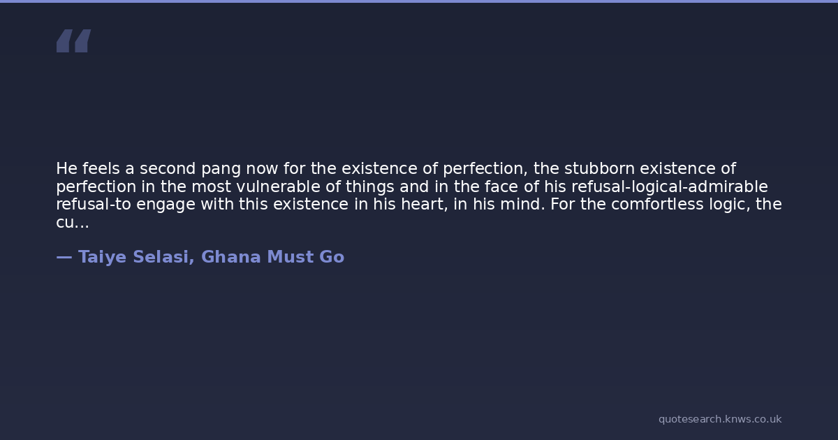 He feels a second pang now for the existence of perfection, the stubborn existence of perfection in the most vulnerable of things and in the face of his refusal-logical-admirable refusal-to engage with this existence in his heart, in his mind. For the comfortless logic, the curse of clear sight, no matter which string he pulls on the same wretched knot: (a) the futility of seeing given the fatality in a place such as this where a mother still bloody must bury her newborn, hose off, and go home to pound yam into paste; (b) the persistence of beauty, in fragility of all places!, in a dewdrop at daybreak, a thing that will end, and in moments, and in a garden, and in Ghana, lush Ghana, soft Ghana, verdant Ghana, where fragile things die.