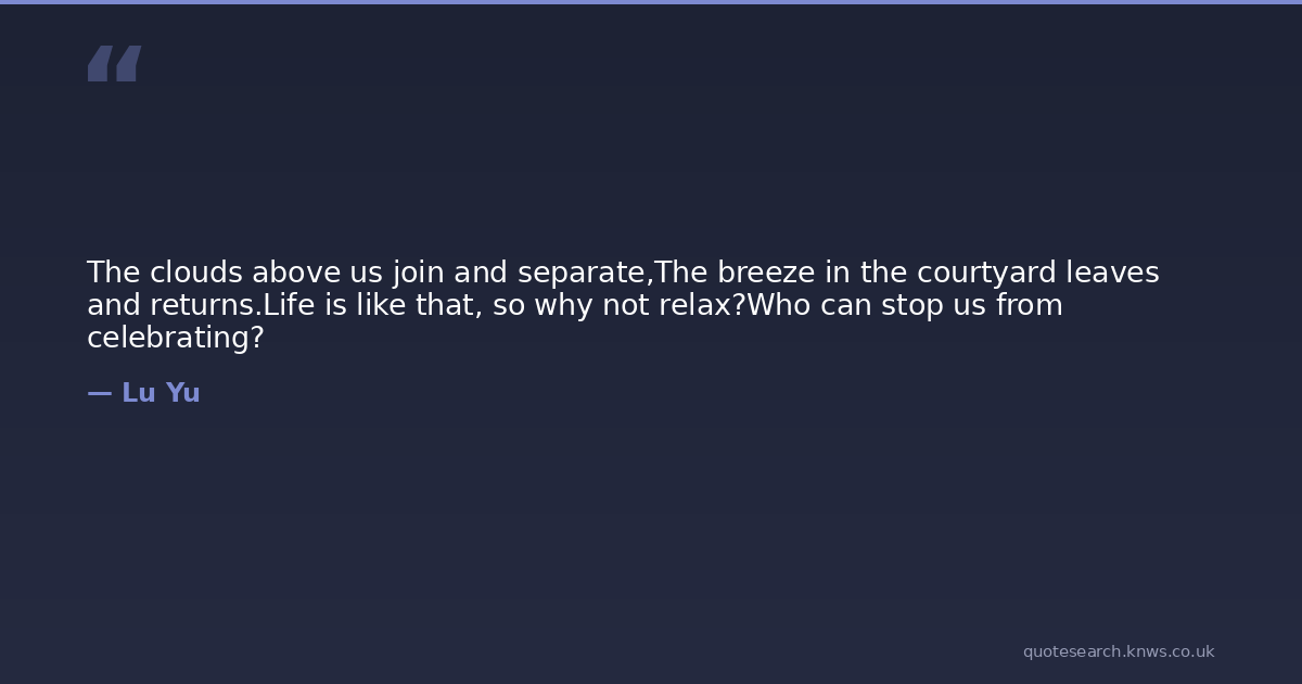The clouds above us join and separate,The breeze in the courtyard leaves and returns.Life is like that, so why not relax?Who can stop us from celebrating?