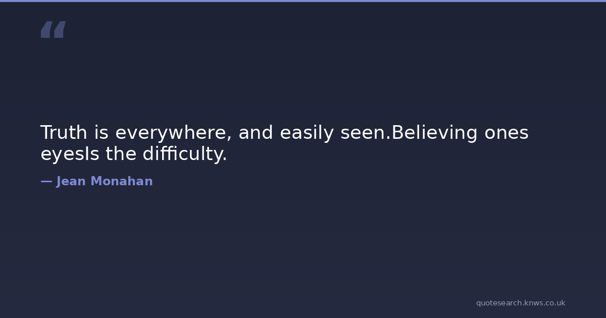Truth is everywhere, and easily seen.Believing ones eyesIs the difficulty. poetry-quotes Download Image Share on X Share on Facebook Copy Link