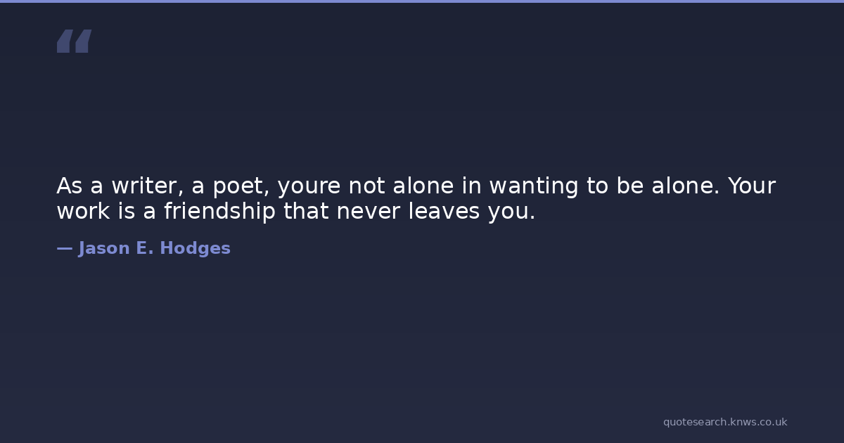 As a writer, a poet, youre not alone in wanting to be alone. Your work is a friendship that never leaves you.