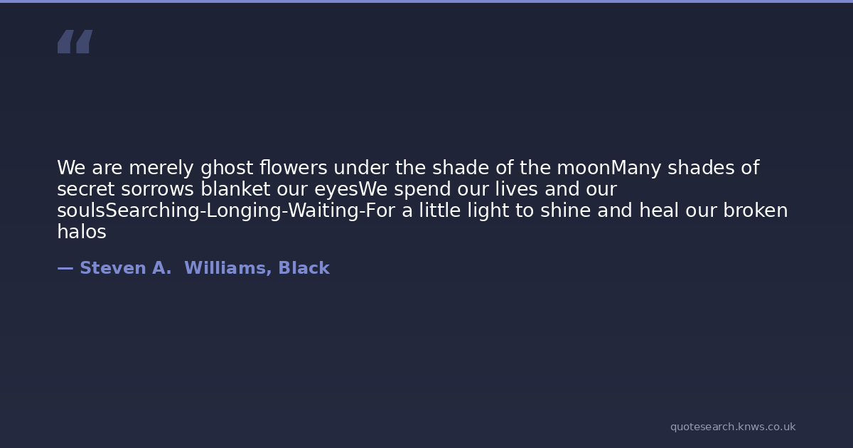 We are merely ghost flowers under the shade of the moonMany shades of secret sorrows blanket our eyesWe spend our lives and our soulsSearching-Longing-Waiting-For a little light to shine and heal our broken halos