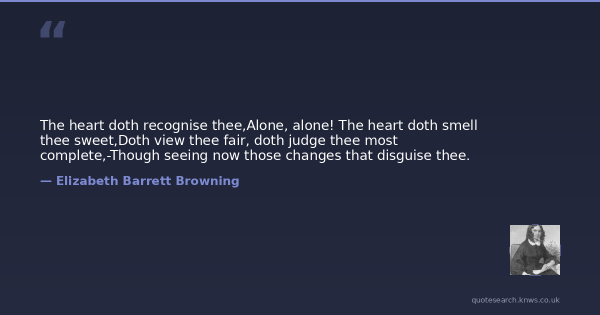 The heart doth recognise thee,Alone, alone! The heart doth smell thee sweet,Doth view thee fair, doth judge thee most complete,-Though seeing now those changes that disguise thee.