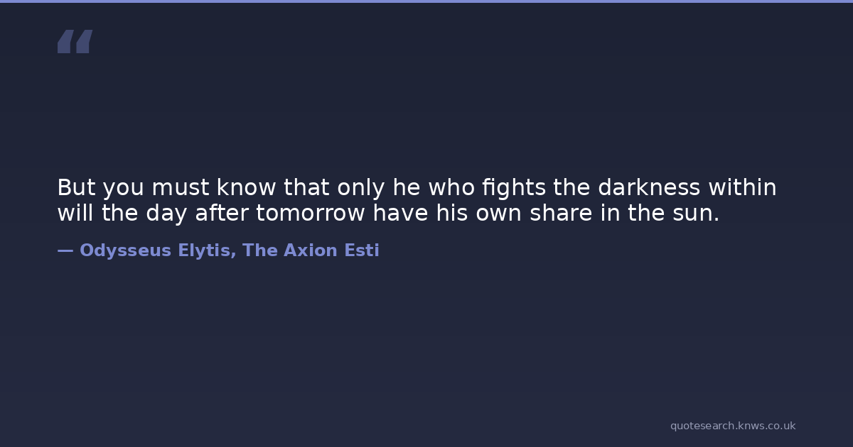 But you must know that only he who fights the darkness within will the day after tomorrow have his own share in the sun.