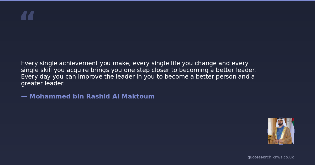 Every single achievement you make, every single life you change and every single skill you acquire brings you one step closer to becoming a better leader. Every day you can improve the leader in you to become a better person and a greater leader.