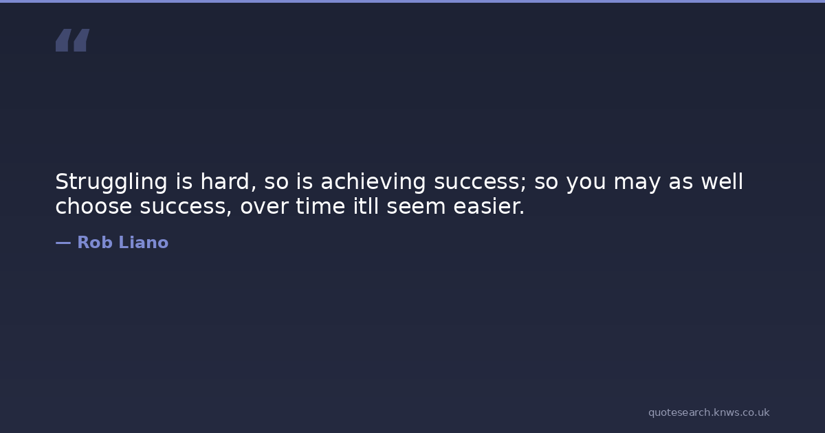 Struggling is hard, so is achieving success; so you may as well choose success, over time itll seem easier.