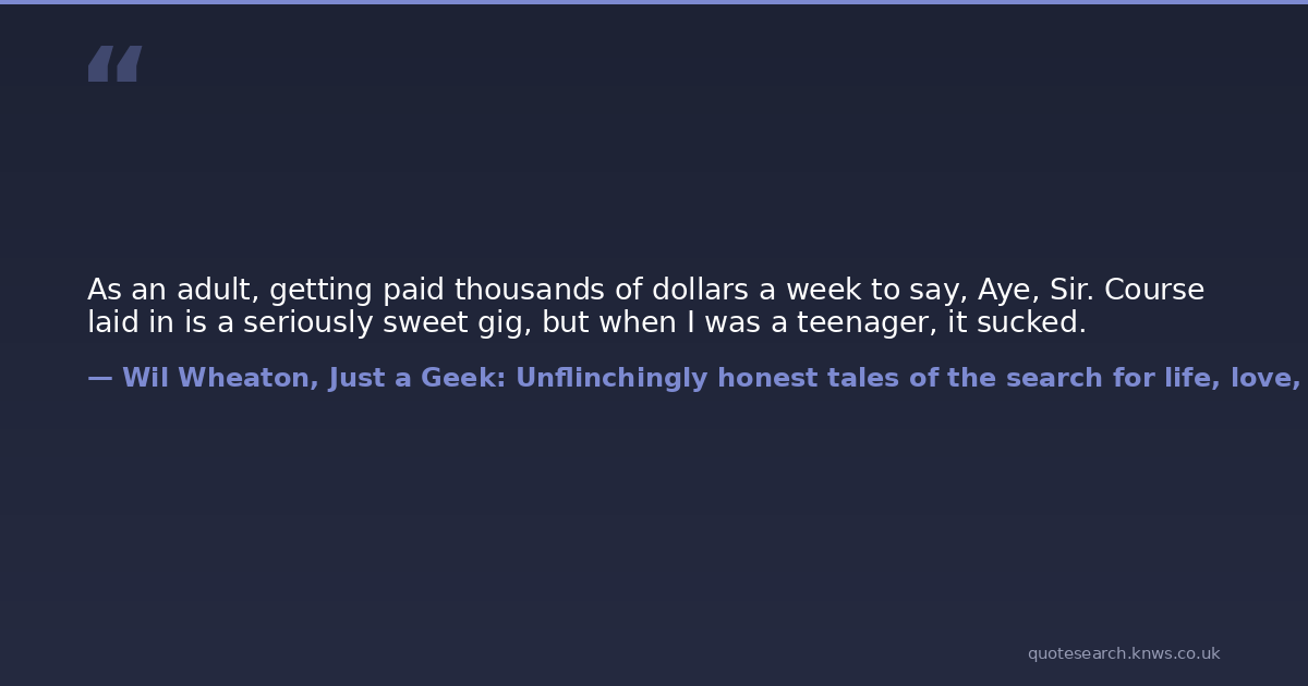 As an adult, getting paid thousands of dollars a week to say, Aye, Sir. Course laid in is a seriously sweet gig, but when I was a teenager, it sucked.
