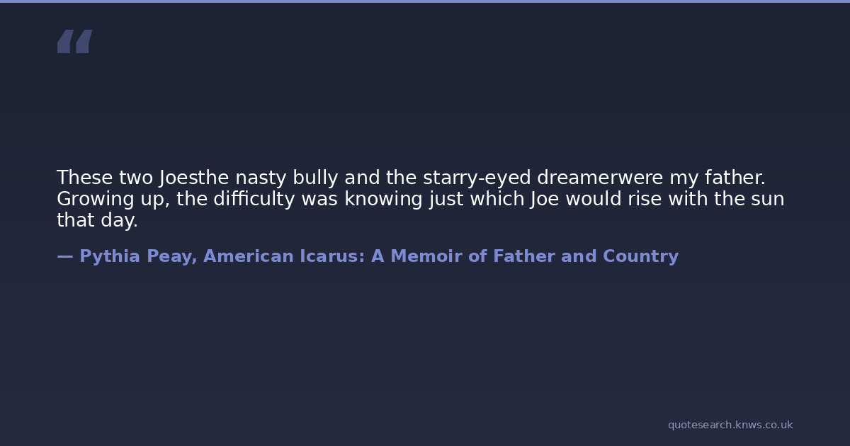 These two Joesthe nasty bully and the starry-eyed dreamerwere my father. Growing up, the difficulty was knowing just which Joe would rise with the sun that day.