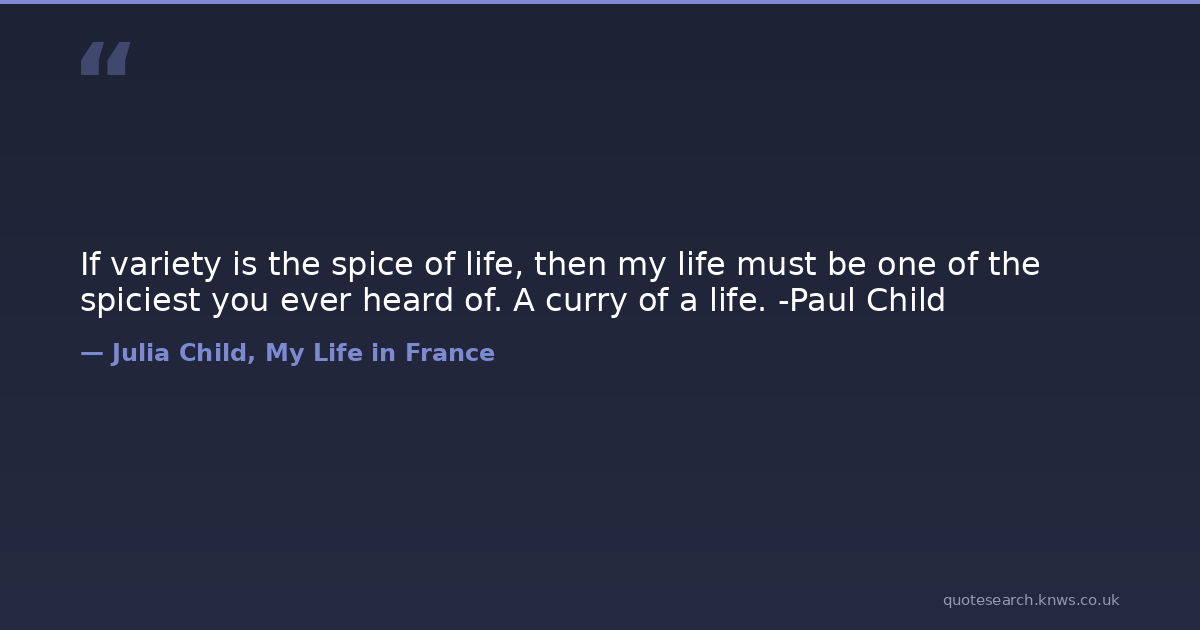 If variety is the spice of life, then my life must be one of the spiciest you ever heard of. A curry of a life. -Paul Child