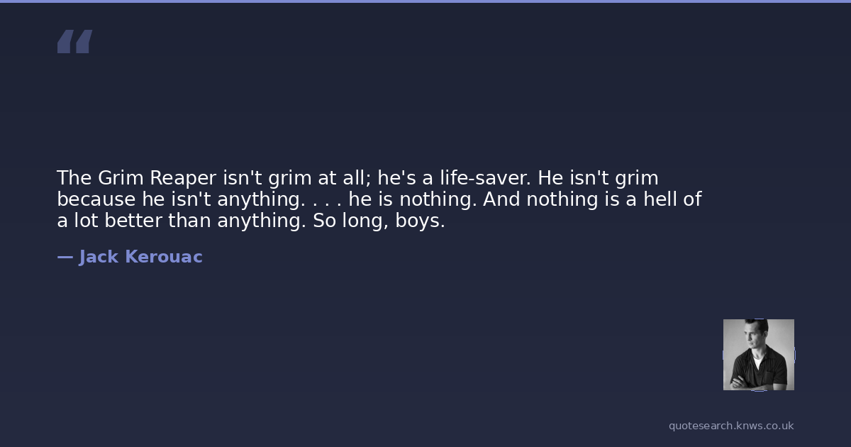 The Grim Reaper isn't grim at all; he's a life-saver. He isn't grim because he isn't anything. . . . he is nothing. And nothing is a hell of a lot better than anything. So long, boys.